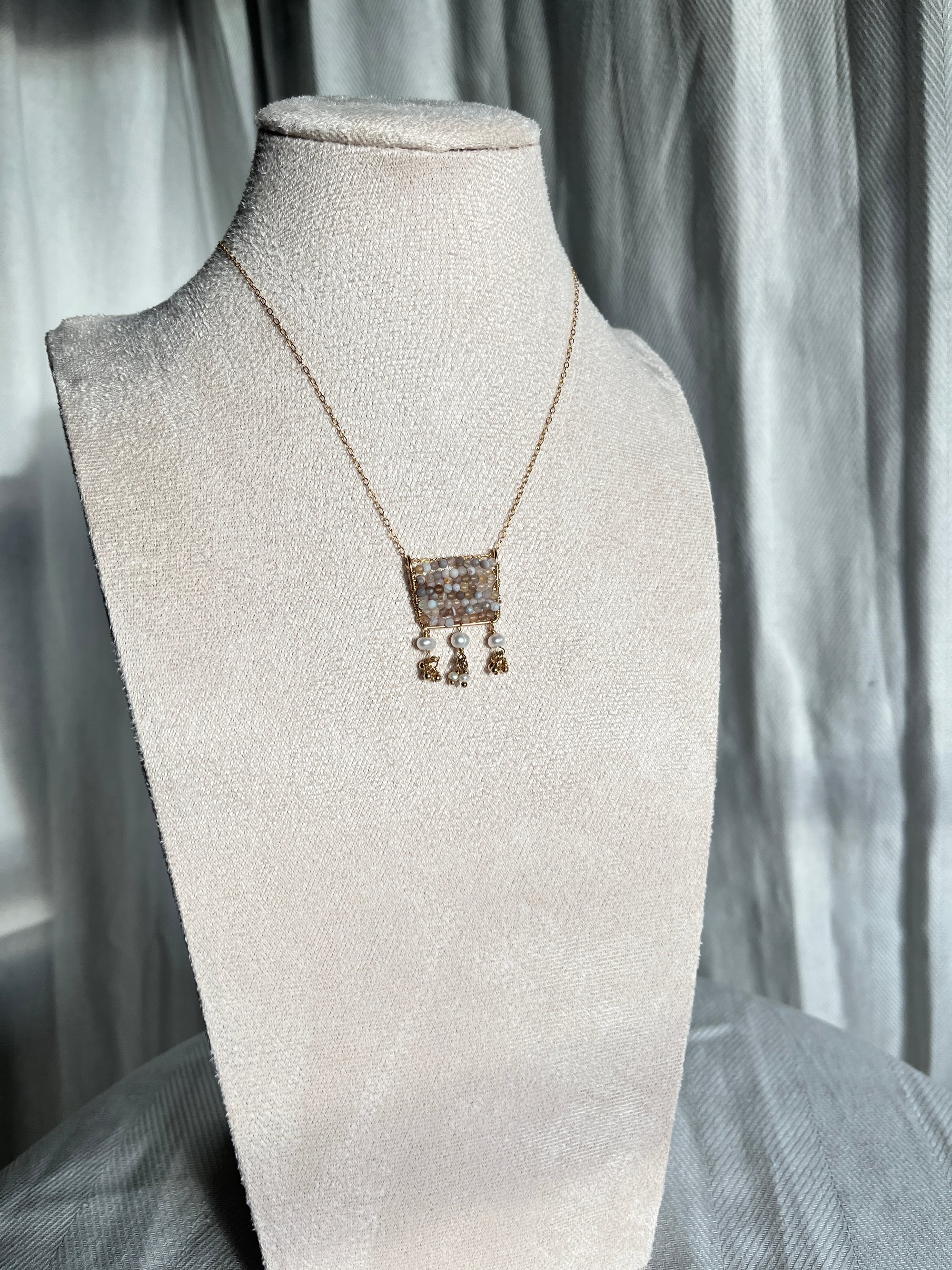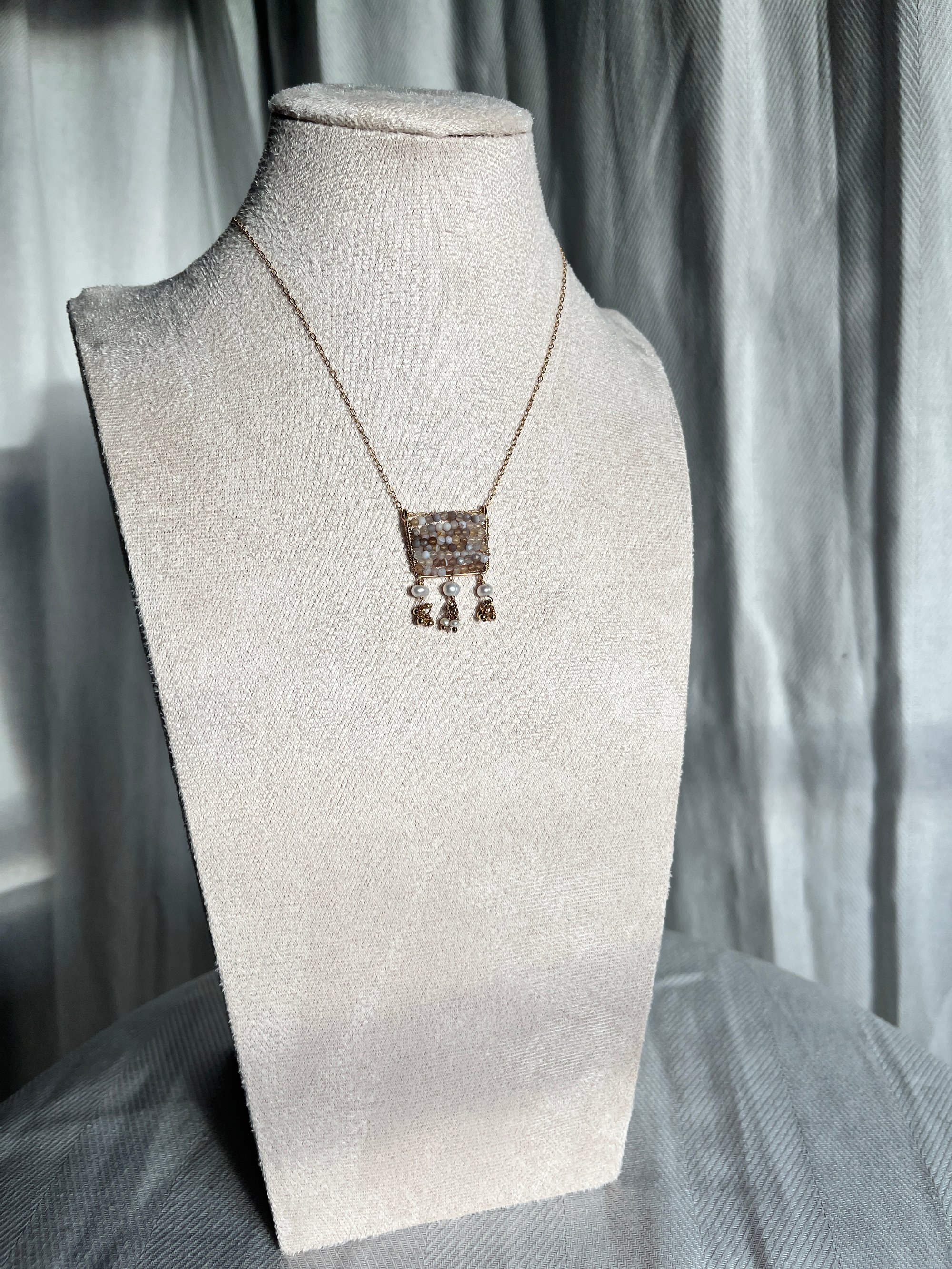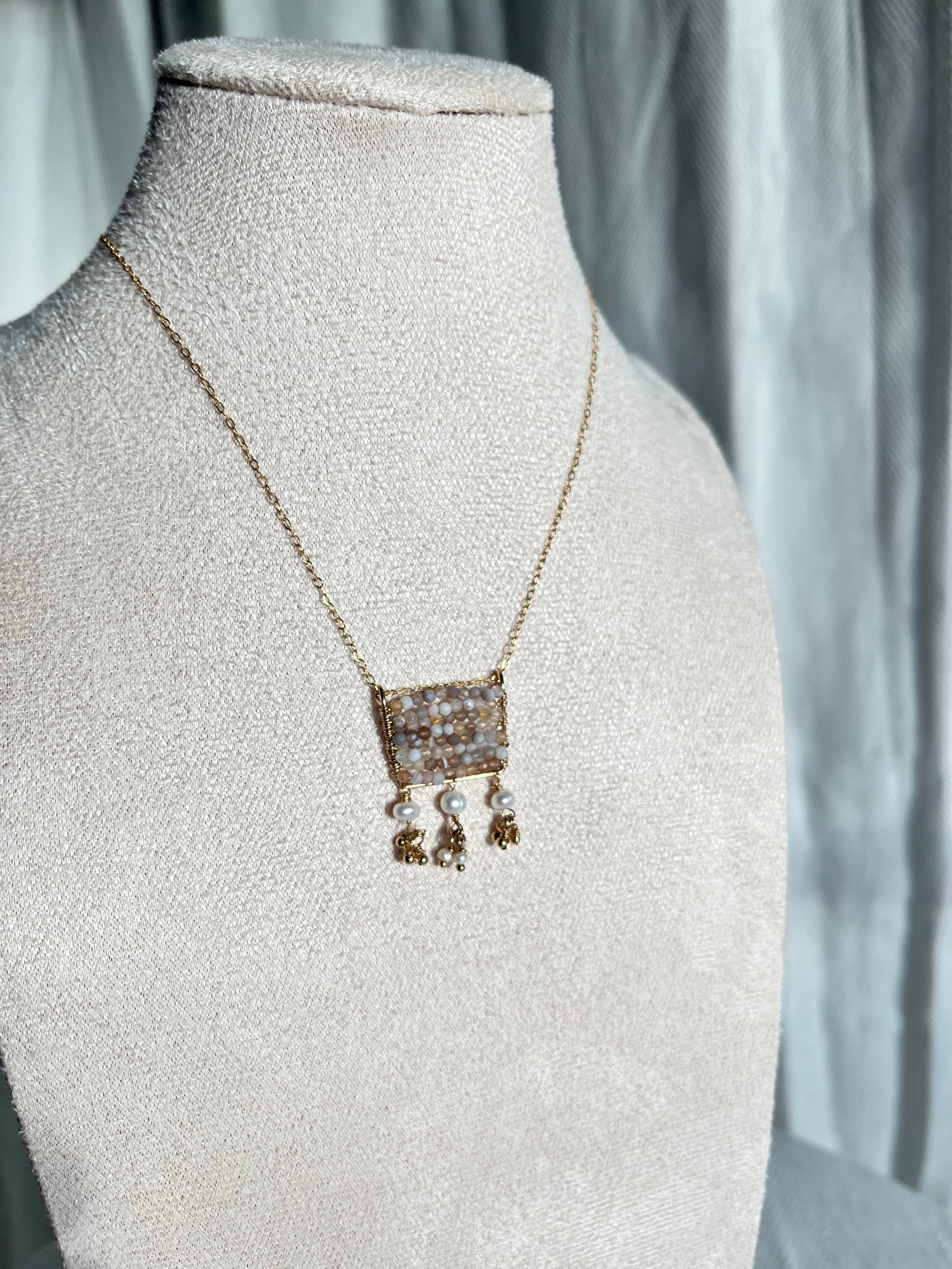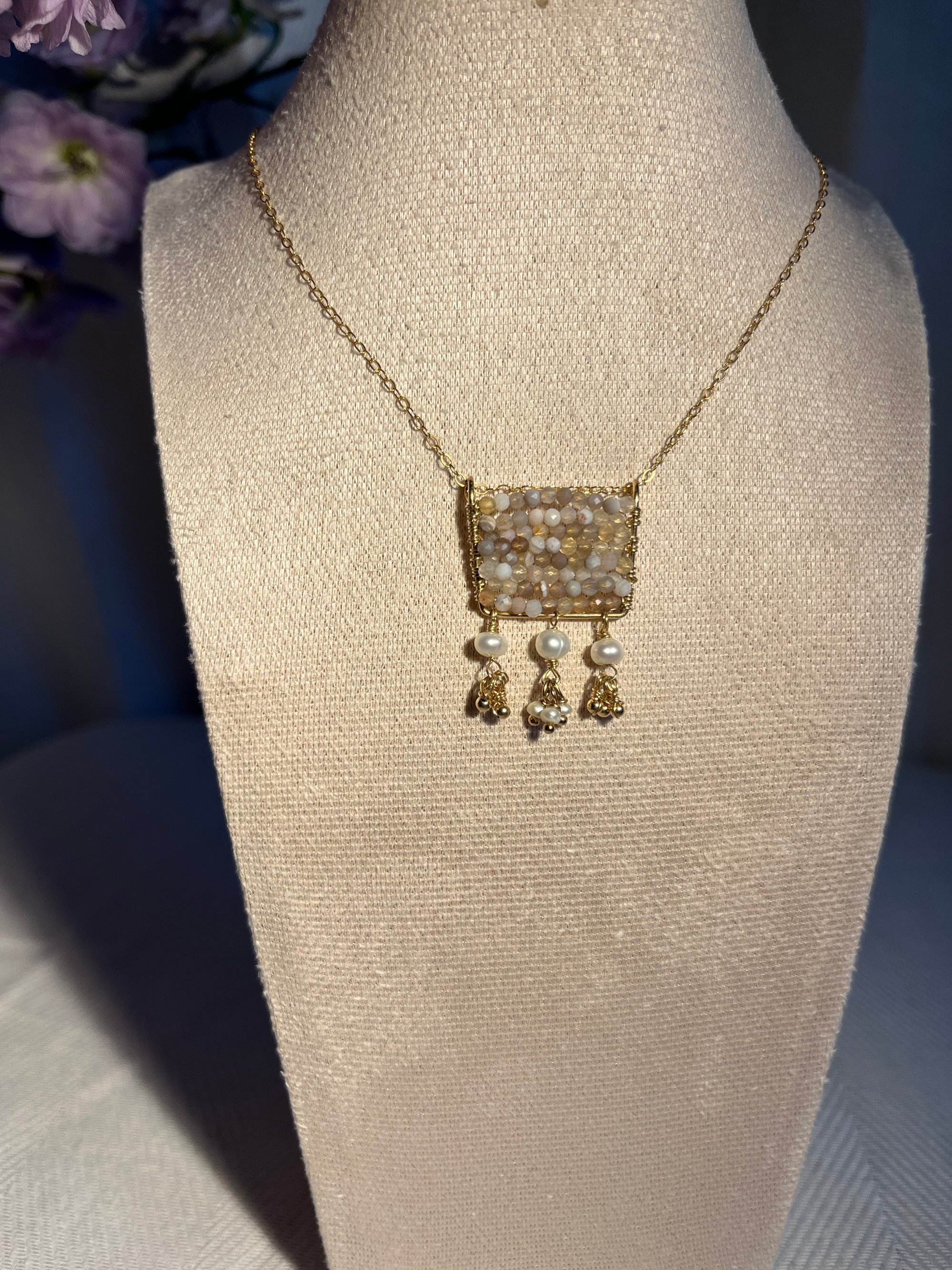Woven Moonstone beads on gold filled with with tiny freshwater pearl dangle detail